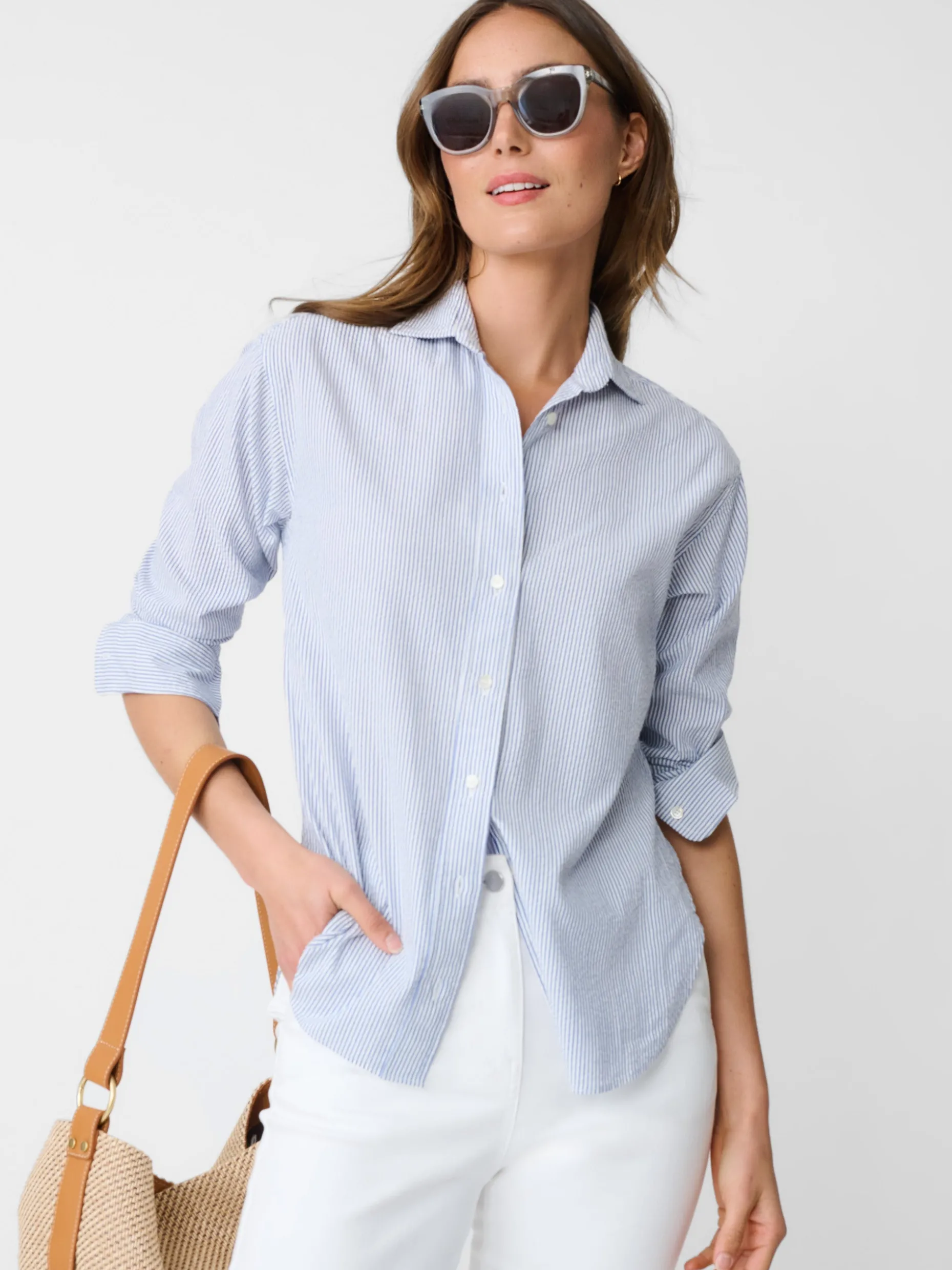 Worn by style icons of the past and present, there’s something so timeless about a classic button-down shirt. Our newest addition to the line up is crafted in 100% seersucker cotton with a drop shoulder that’s somewhere between structured and relaxed. For a menswear-inspired look, cuff the sleeves.