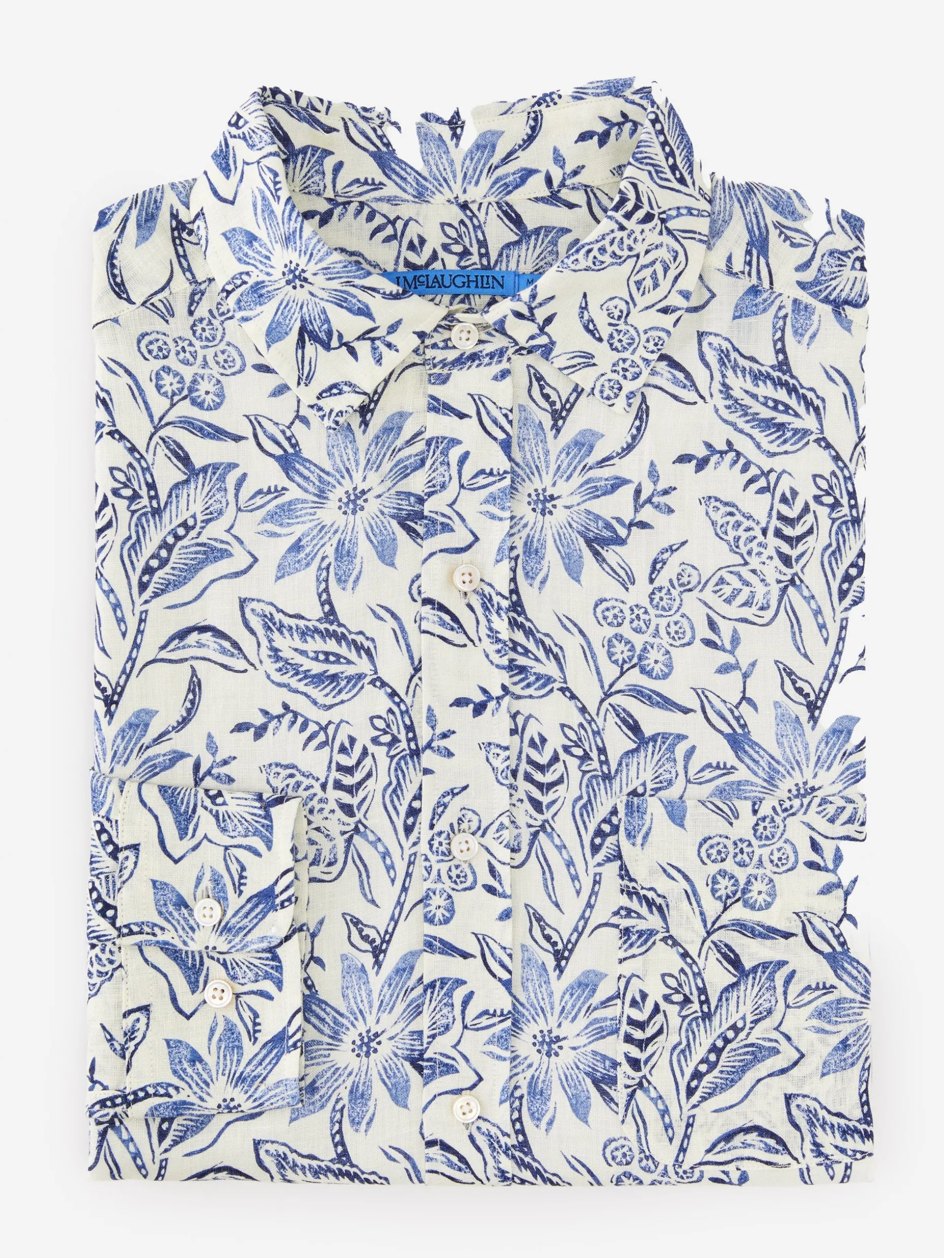 Gramercy Classic Fit Linen Shirt In Indigo Flora