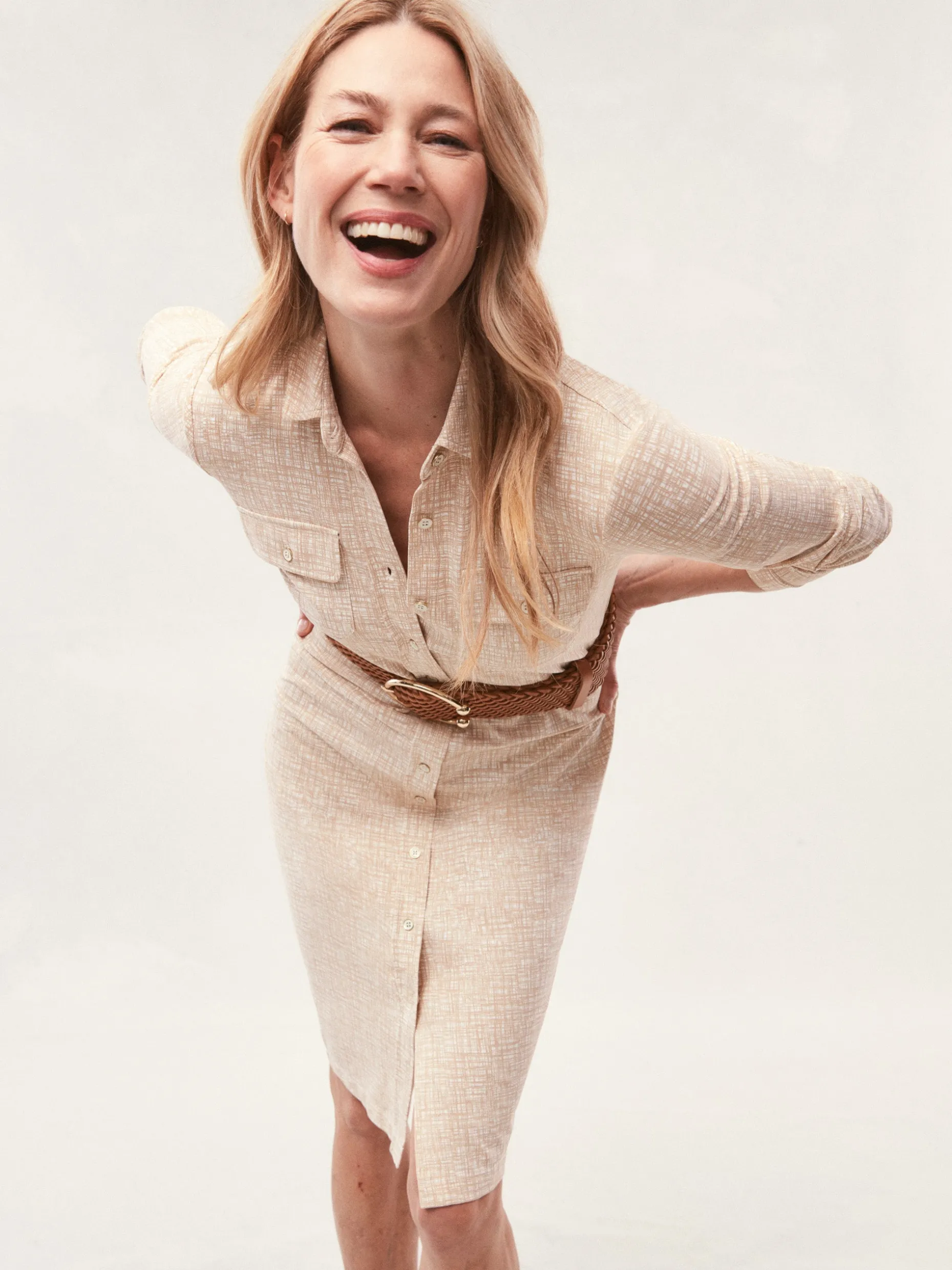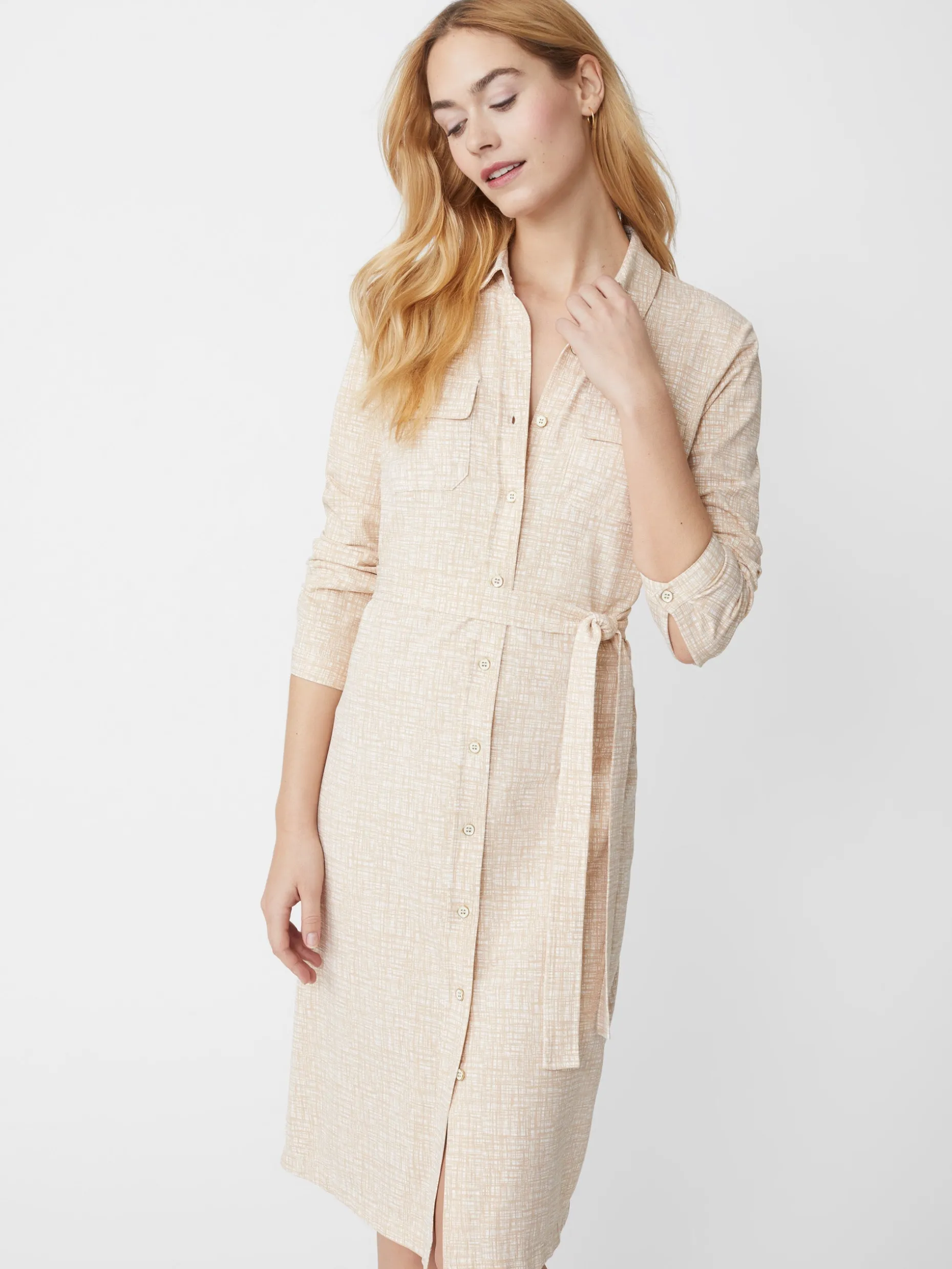 No matter where the season takes you, our latest shirtdress will have you dressed for the occasion. In our signature stretchy fabric, our tie waist dress gives you polish in an instant. Work drinks? Yes. Impromptu dinner? Absolutely. Accessorize with abandon to make it your own.