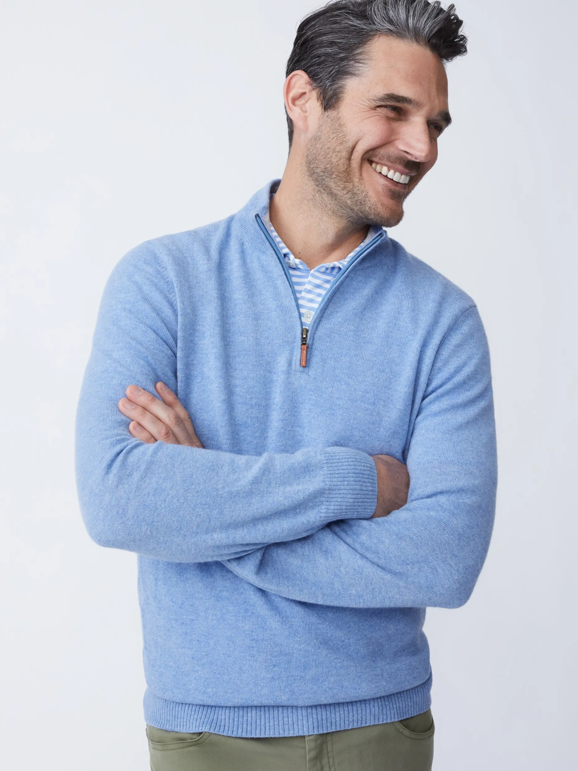 Spring cashmere has arrived in the form of our essential zip neck sweater.