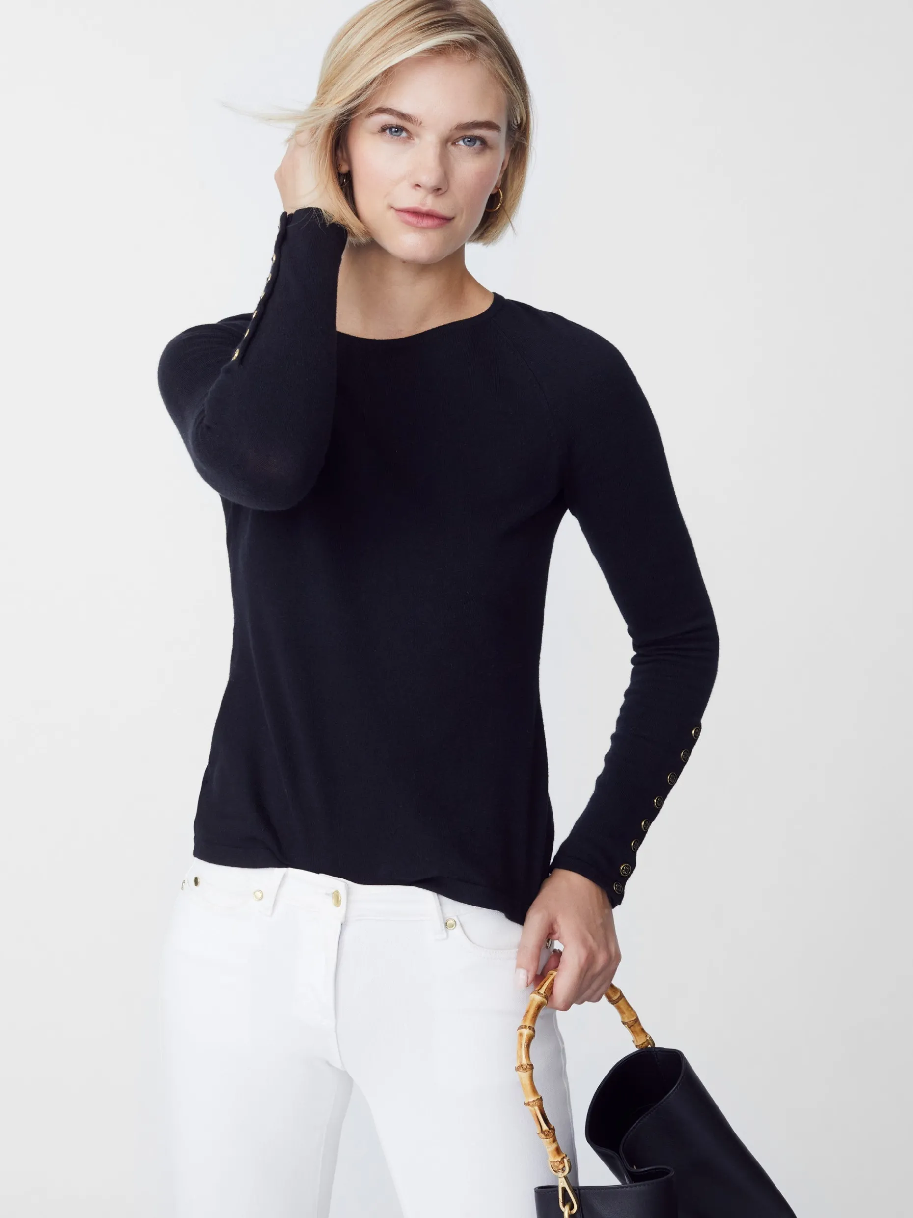 As easy as a tee, our raglan sleeve sweater comes in season spanning stretch knit with tiny golden buttons like built-in jewelry.