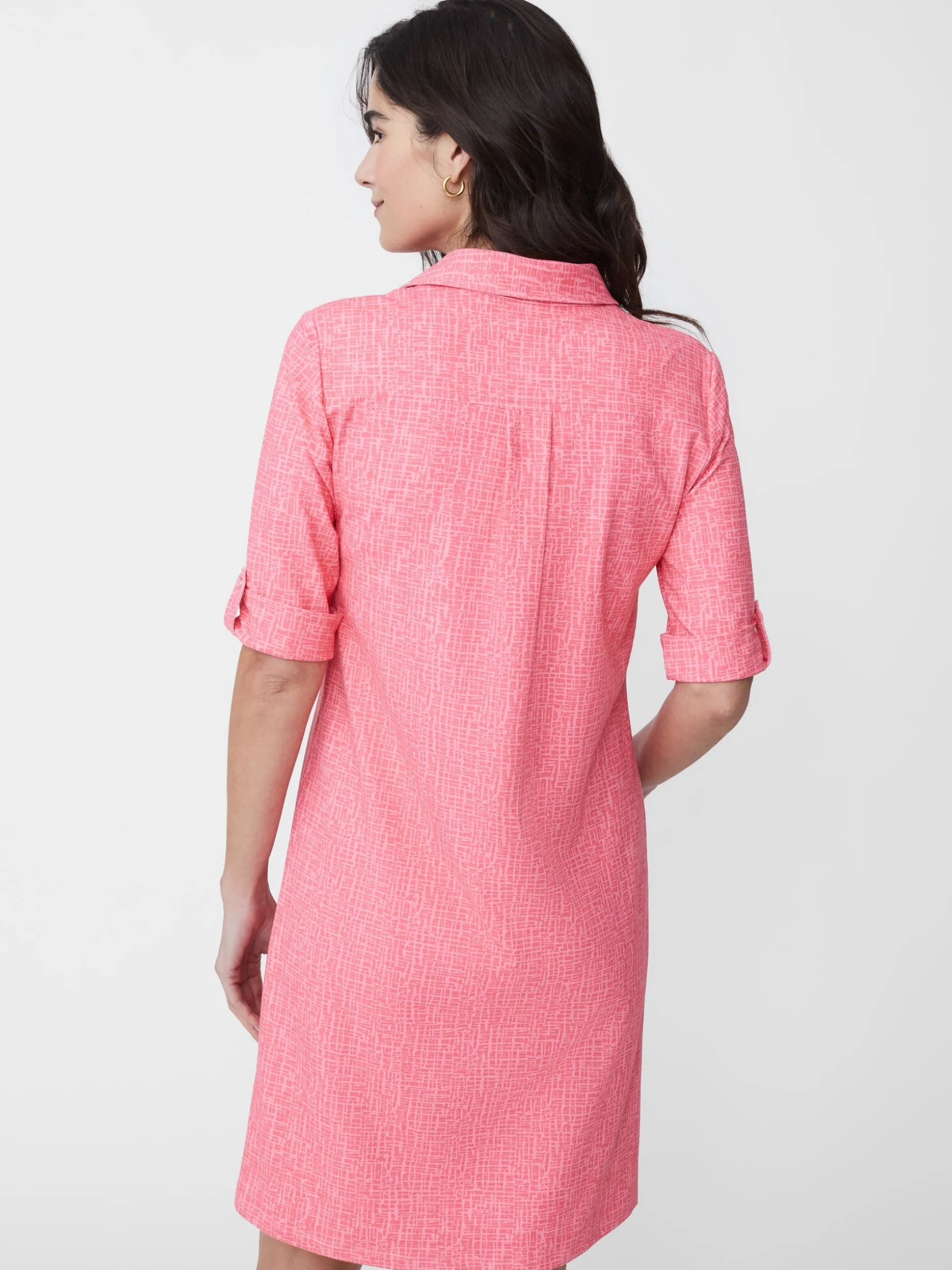 Menswear inspired – the shirtdress is a forever classic in our wardrobes. Slip into our newest iteration – the crisp and fresh Lawrence dress – a 3/4 sleeve utility dress with front pockets.