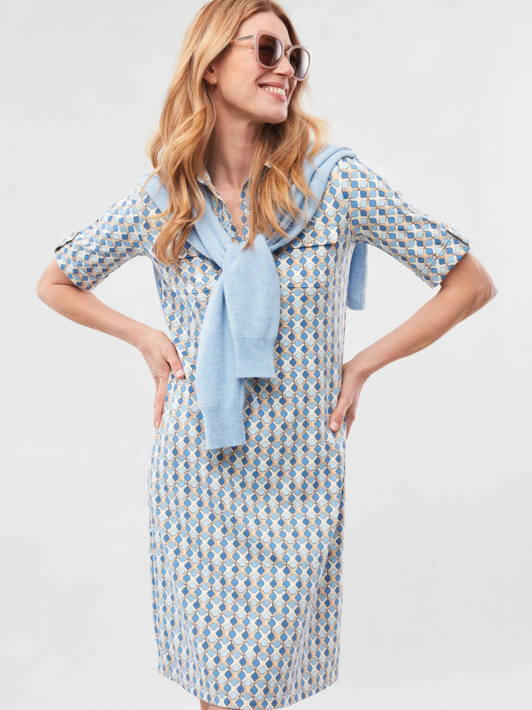 Menswear inspired – the shirtdress is a forever classic in our wardrobes. Slip into our newest iteration – the crisp and fresh Lawrence dress – a 3/4 sleeve utility dress with front pockets.