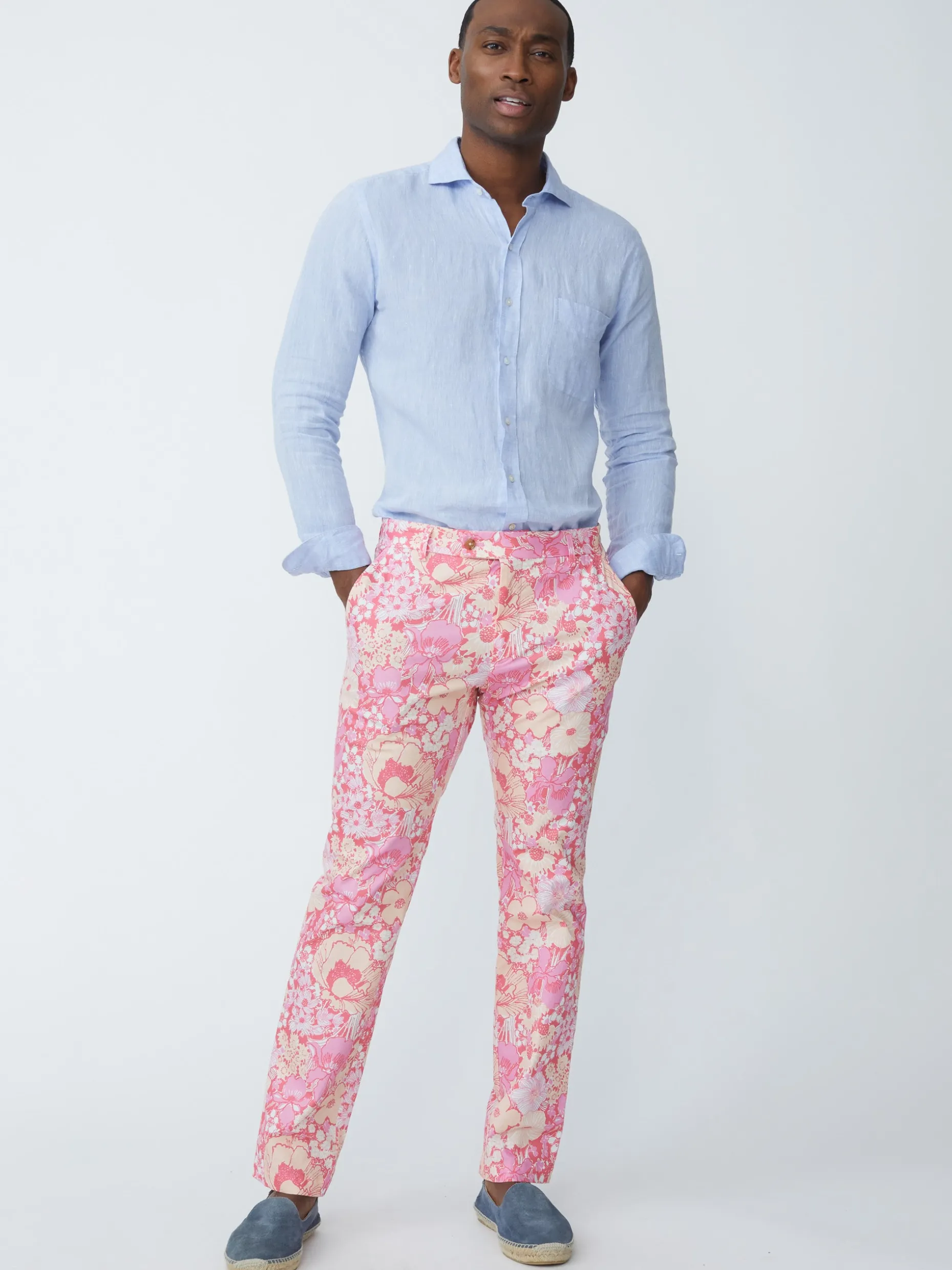 With a breezy white linen shirt, our boldly printed stretch cotton pants make quite the power move.