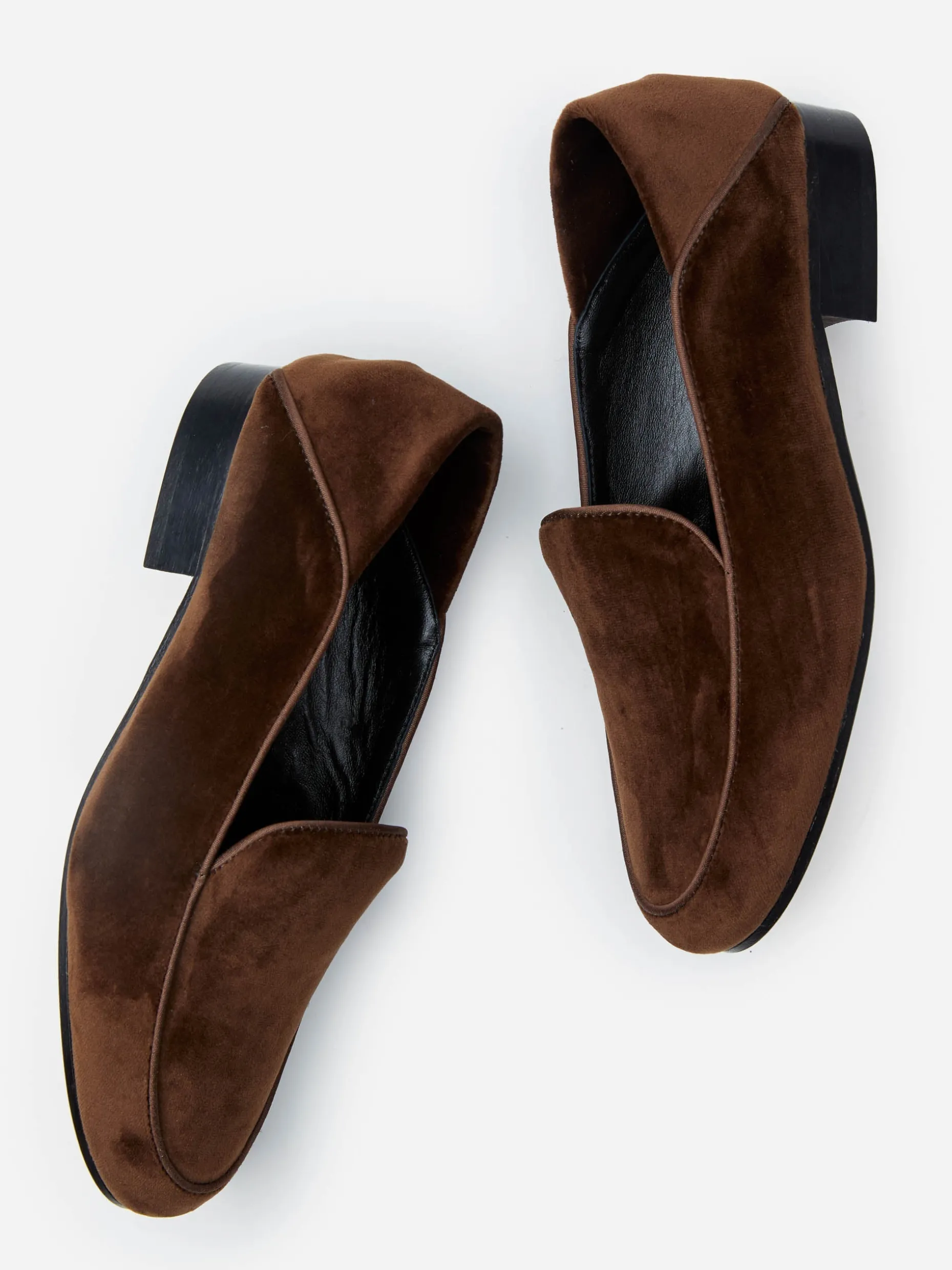 Your go-to loafer got an update. Our newest mule (that you can also wear as a full loafer) the velvet Luna, pairs well with everything from denim to party skirts.