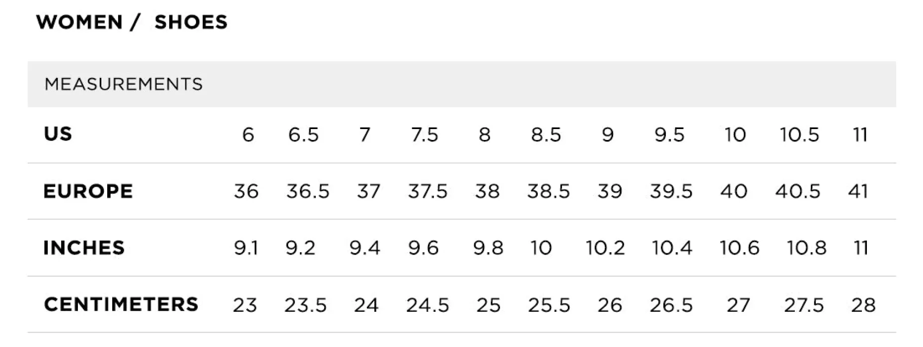 | Size | 6, 6.5, 7, 7.5, 8, 8.5, 9, 9.5, 10, 11 |