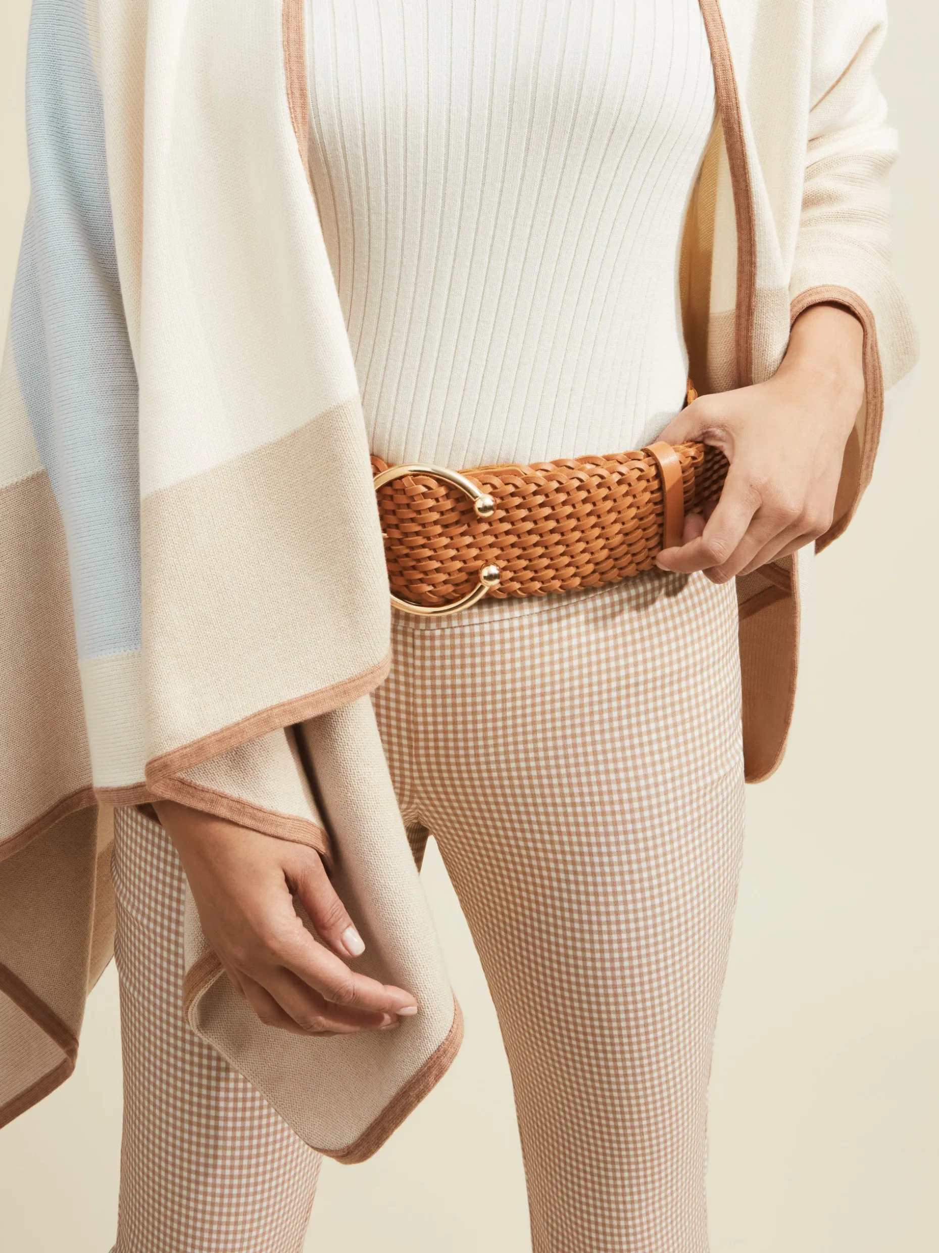 Cinch it. Add dimension to your look with our statement belt in luxe woven leather with a gold buckle.