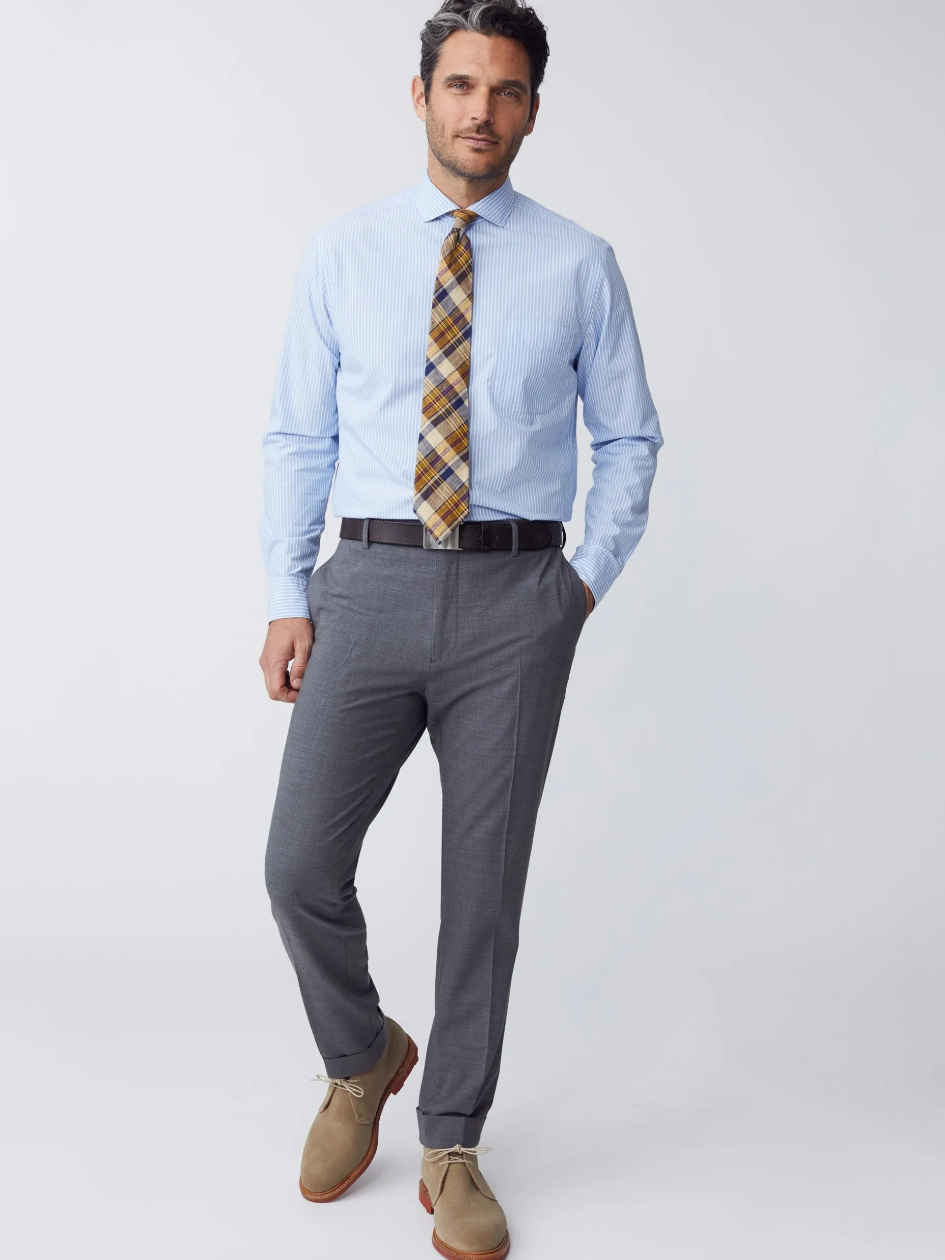 This easy and elegant tailored trouser stays snappy even in warmer temps. Made from tropical-weight wool, it’s got stretch fabric and a flattering, tapered cut. Pockets are cut on the seam, for a cleaner silhouette. Dress it up with a sport coat or down with a simple polo. Note: Ships with unfinished hems.
