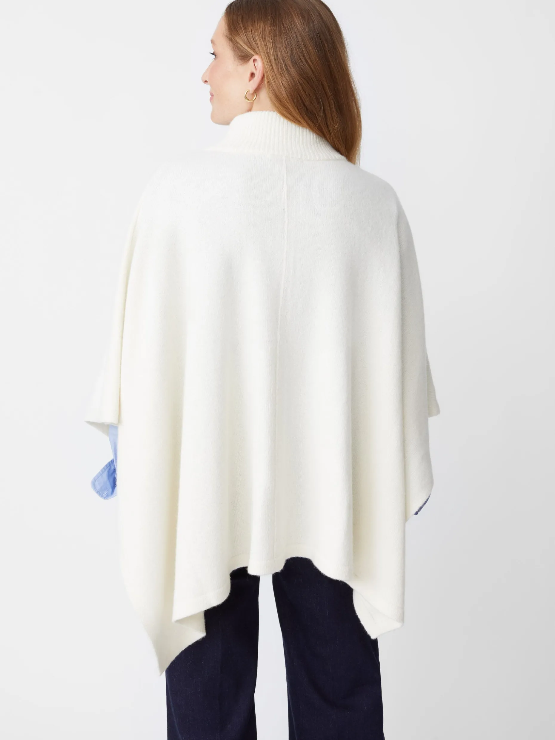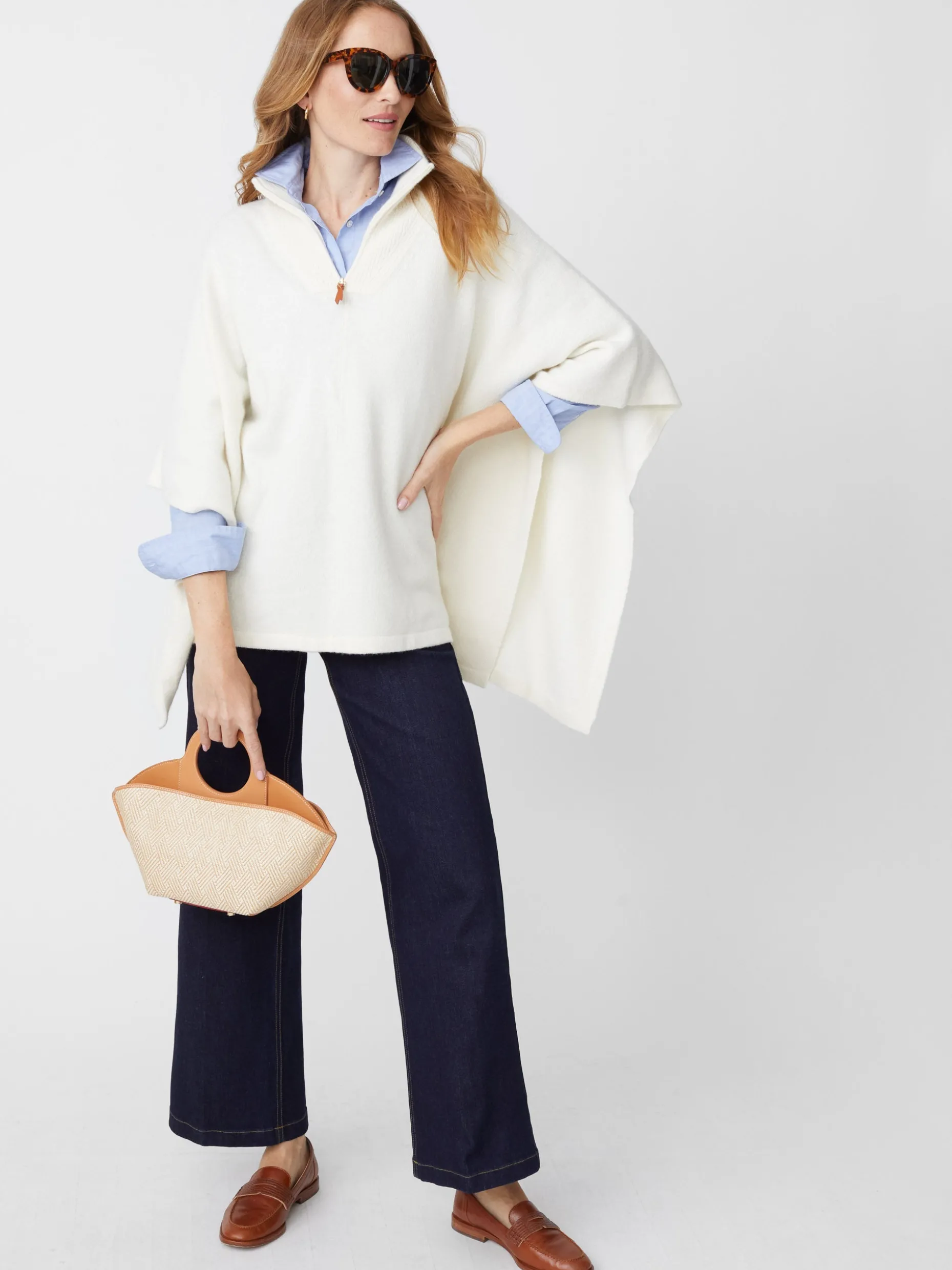 Wrap yourself in our luxe cashmere merino wool blend poncho. This top layer has a half zip neckline and handkerchief hem for function and fashion.