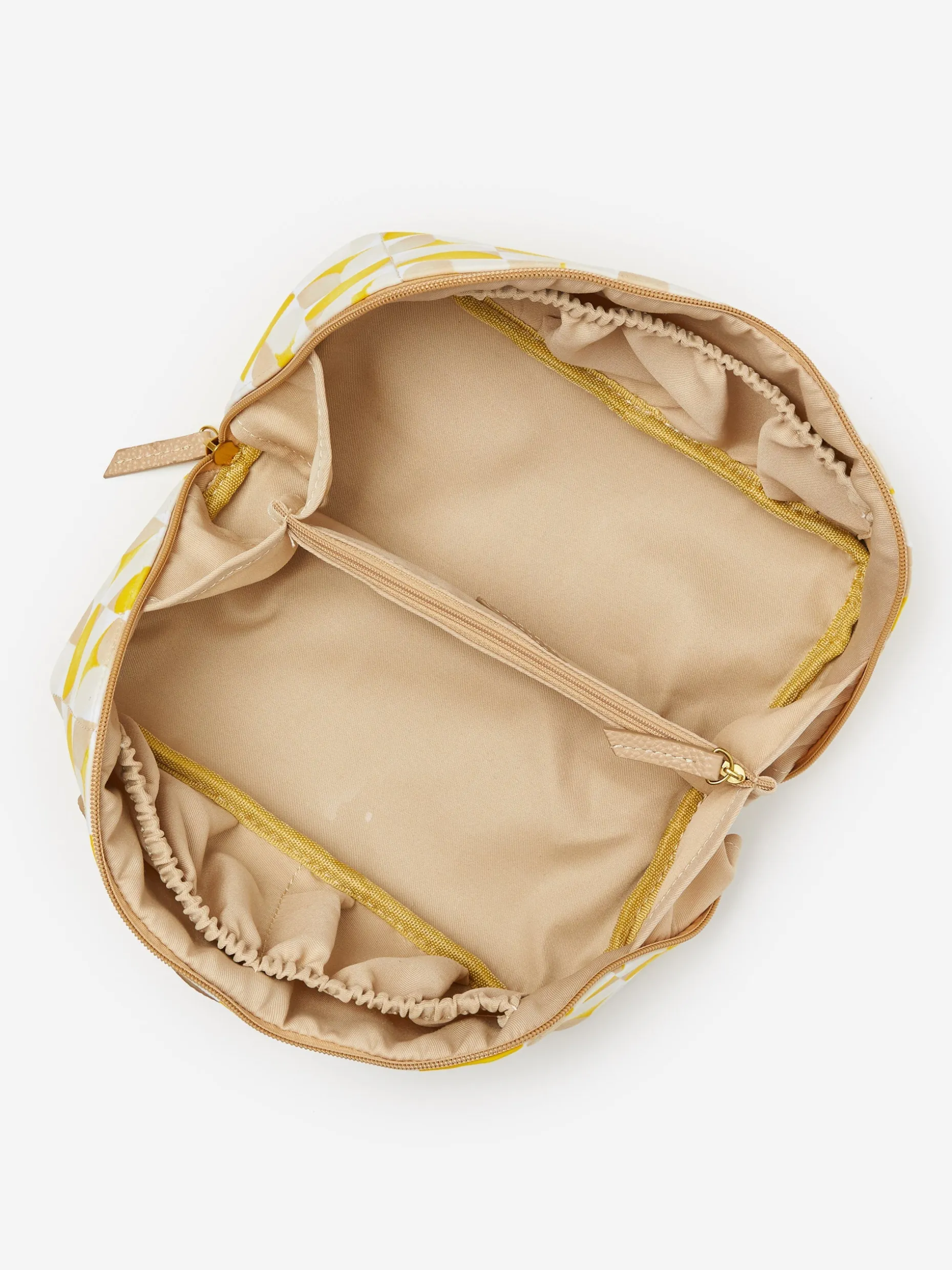 Great gift alert. A chic print and polished trim give our roomy cosmetic pouch classic good looks.