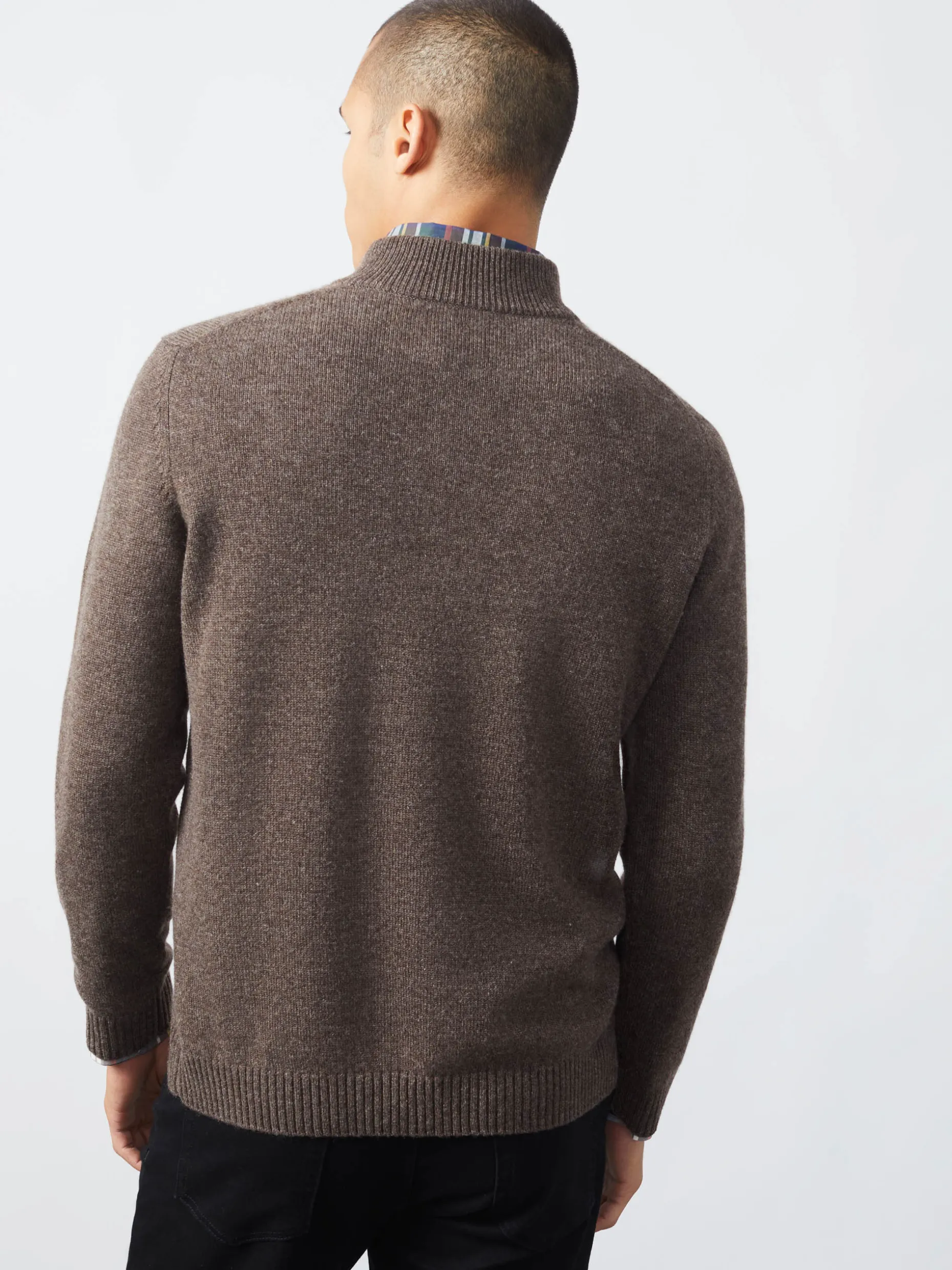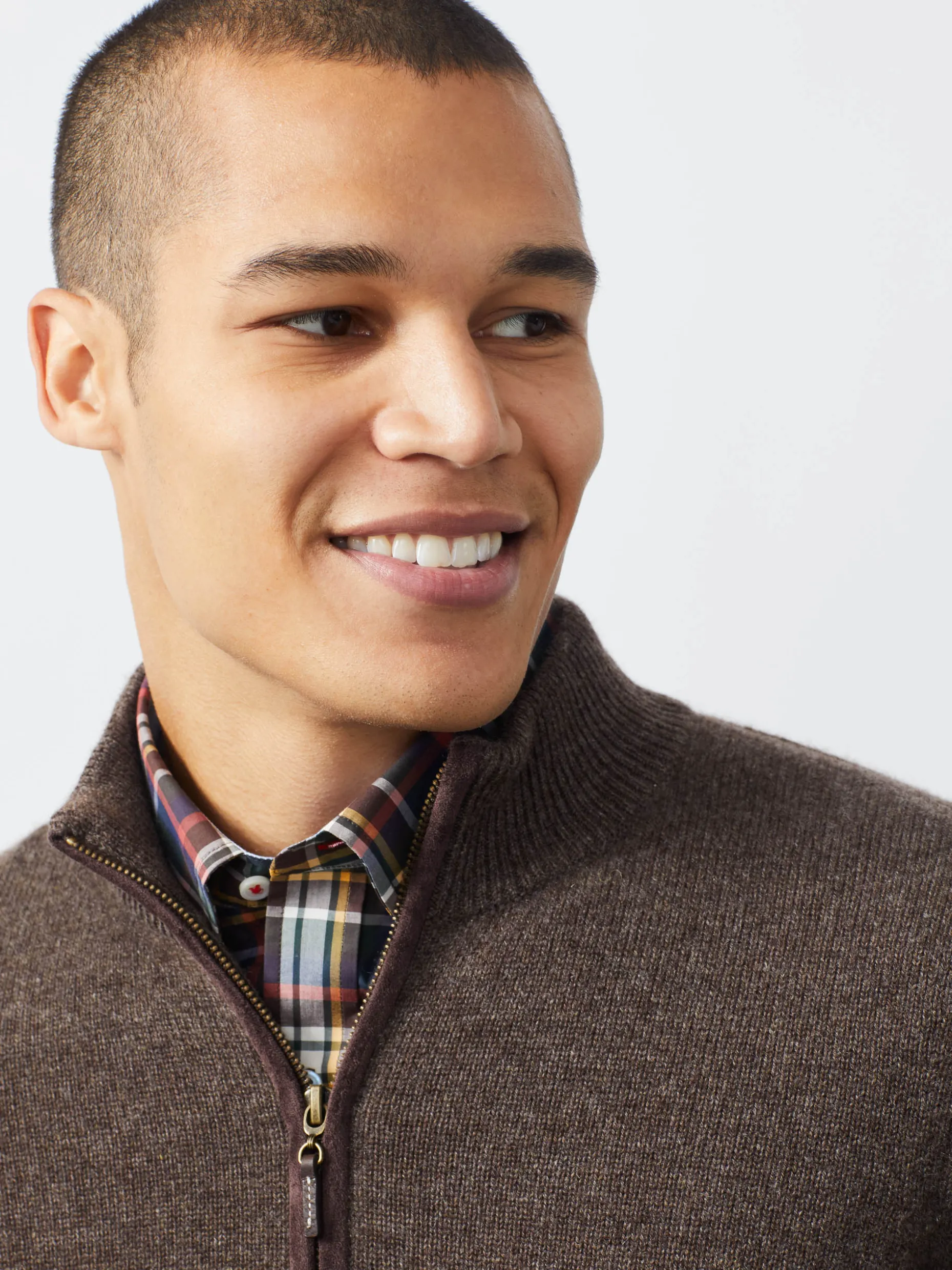 There is a reason why cashmere is often referred to as spun gold. It is just that luxurious and just that enduring. Add to that a classic half-zip silhouette detailed with rich brown suede and you have modern elegance at its nonchalant best.
