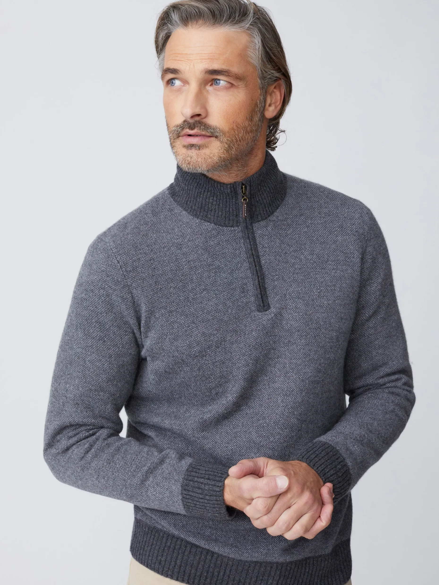 There is a reason why cashmere is often referred to as spun gold. It is just that luxurious and just that enduring. Add to that a classic half-zip silhouette detailed with rich brown suede and you have modern elegance at its nonchalant best.