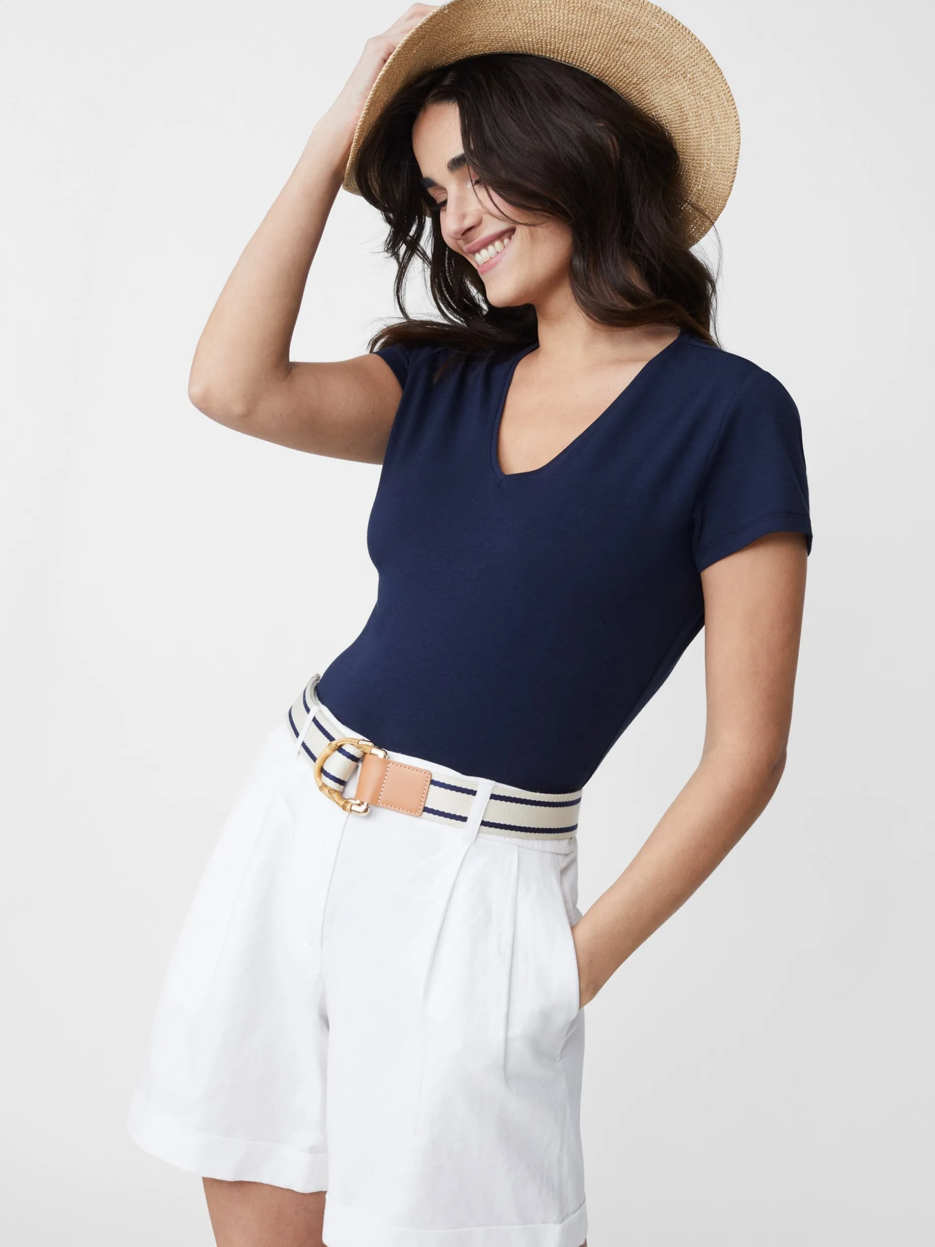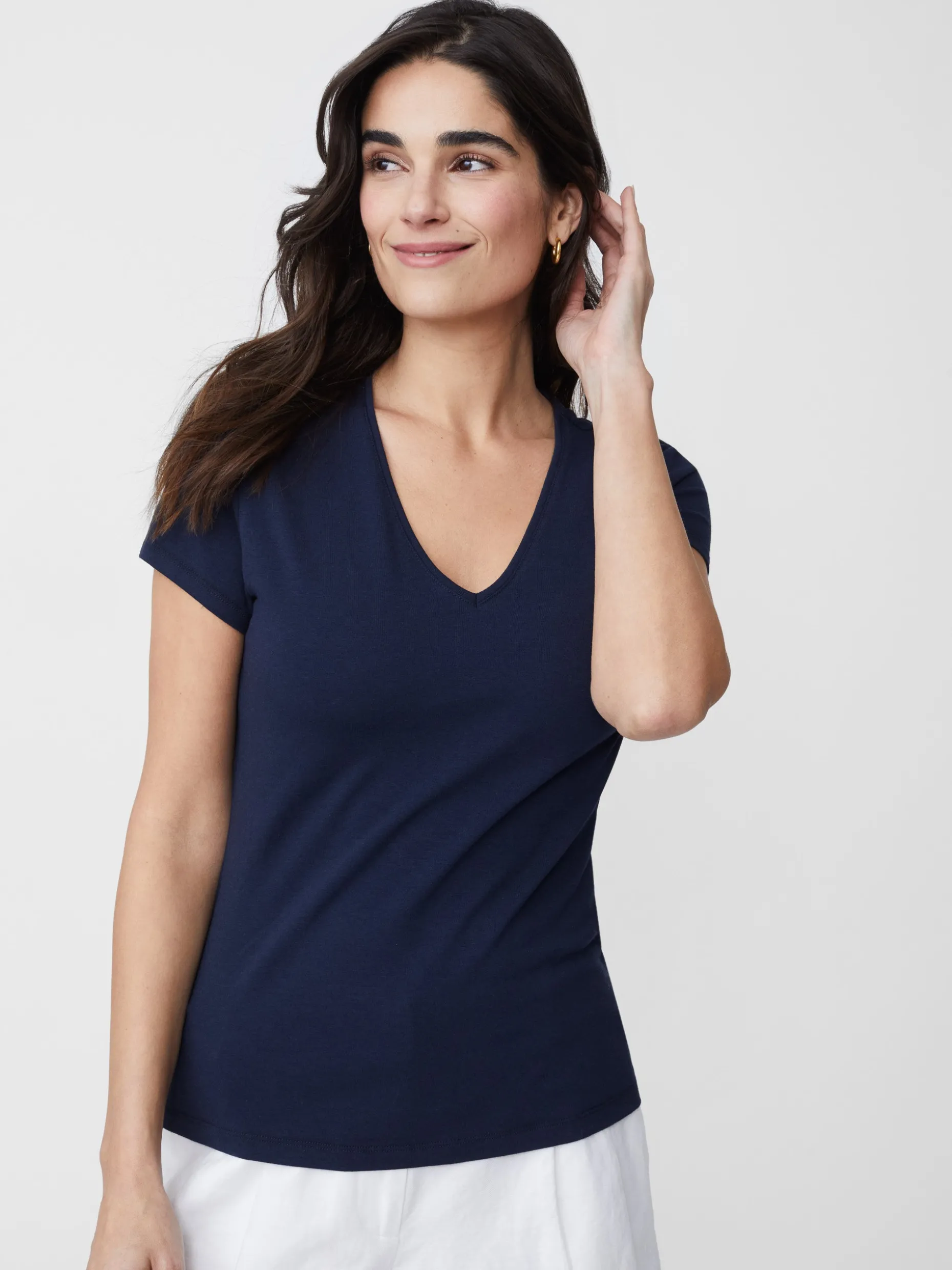 While we know we don’t need to tell you how versatile and chic a classic v-neck tee can be, we can’t stop talking about Terrine. With cap sleeves and a slimming silhouette, this tee is made in our signature cotton blend and only gets softer the more you wear it. We recommend buying one of every color because we still haven’t found a bottom we can’t pair with it.